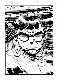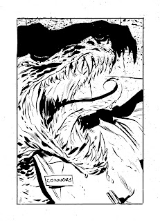 Here's a recent Conan commission, a redraw of a much earlier, unfinished piece co-starring the tenth Doctor. I'd like to draw Conan professionally some day, he's become a favourite of mine over the last five years or so. Something to do with approaching forty...? I took a different approach with this one, spotting all the blacks first and using those blacks to define the shapes for me. It gives the finished piece a rich, organic look... And uses a LOT of ink.